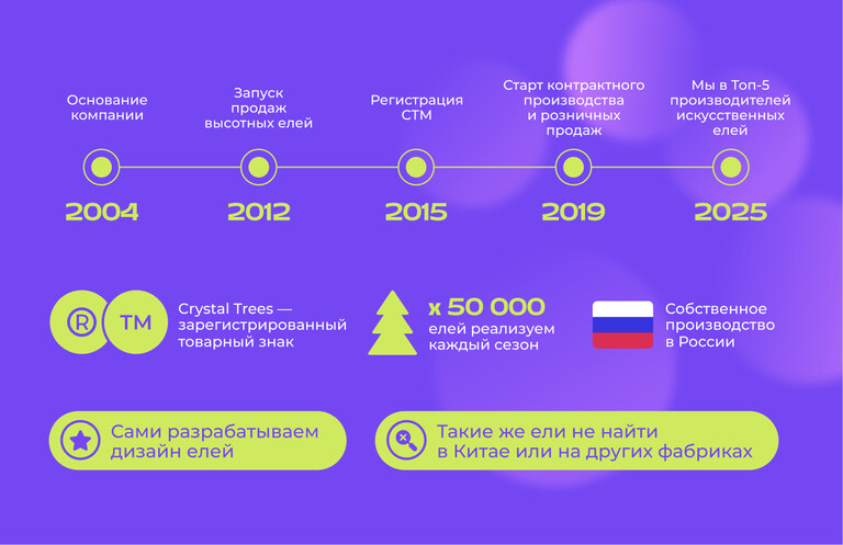 Для Crystal Trees — российского производителя искусственных елей и новогоднего декора с собственным производством — мы обновили айдентику и цифровое оформление. Основная задача заключалась в том, чтобы адаптировать бренд к онлайн-среде и выделить его в категории, которая визуально давно стала однообразной.