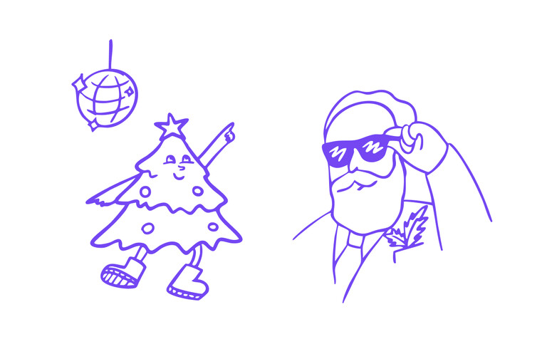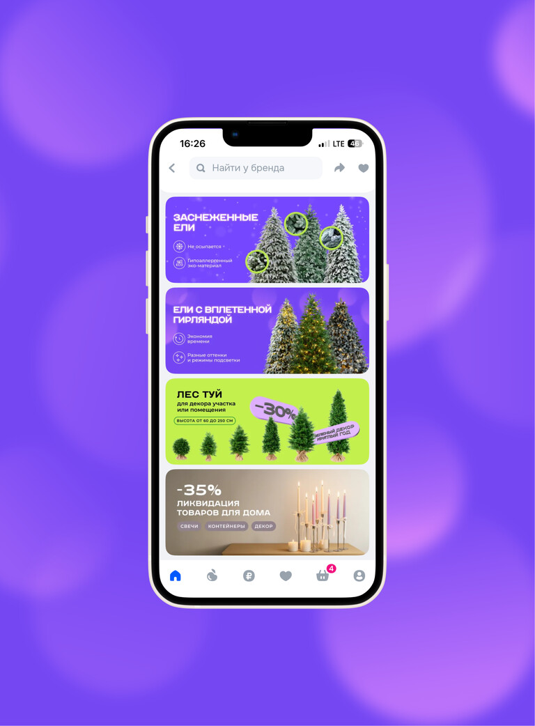 В дизайн-системе мы продумали два типа инфографики — информационную для УТП и характеристик, и имиджевую для выразительных баннеров. Фирменные элементы — блюренные окружности, передающие сияние огней, лёгкий «снег» и декоративная ниточка — связывают коммуникацию в единый стиль. Эта же логика продолжена в контурных иллюстрациях для блога, стикеров и мерча, формируя цельную визуальную экосистему.