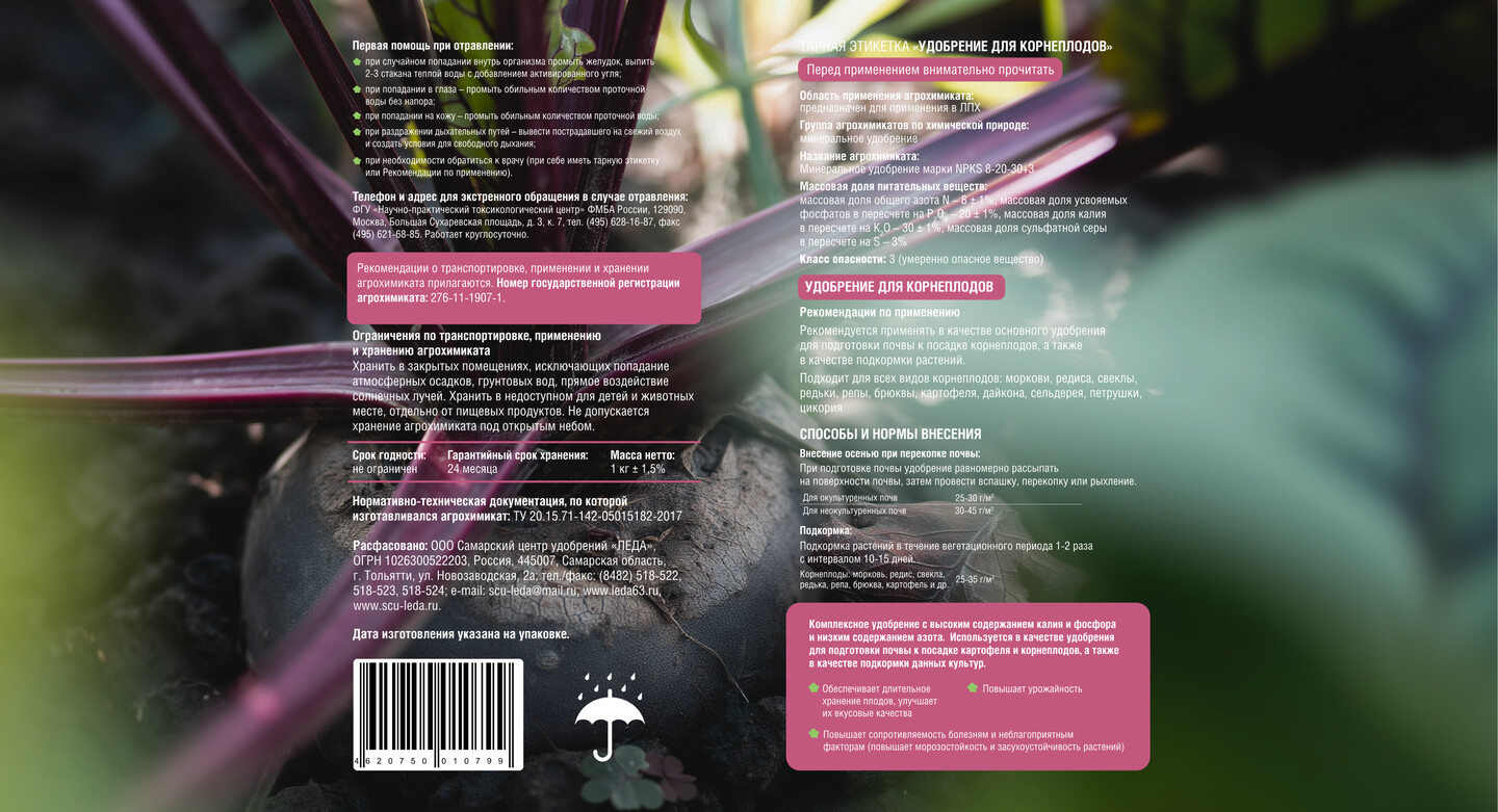 Ключевым элементом коммуникации стало подчеркивание уникальности химического соединения удобрения (азот, фосфор и калий в одной грануле). Эта информация была вынесена в инфографику для усиления качества продукта и его дифференциации, поскольку данное соединение является важным конкурентным преимуществом, улучшающим свойства удобрения.