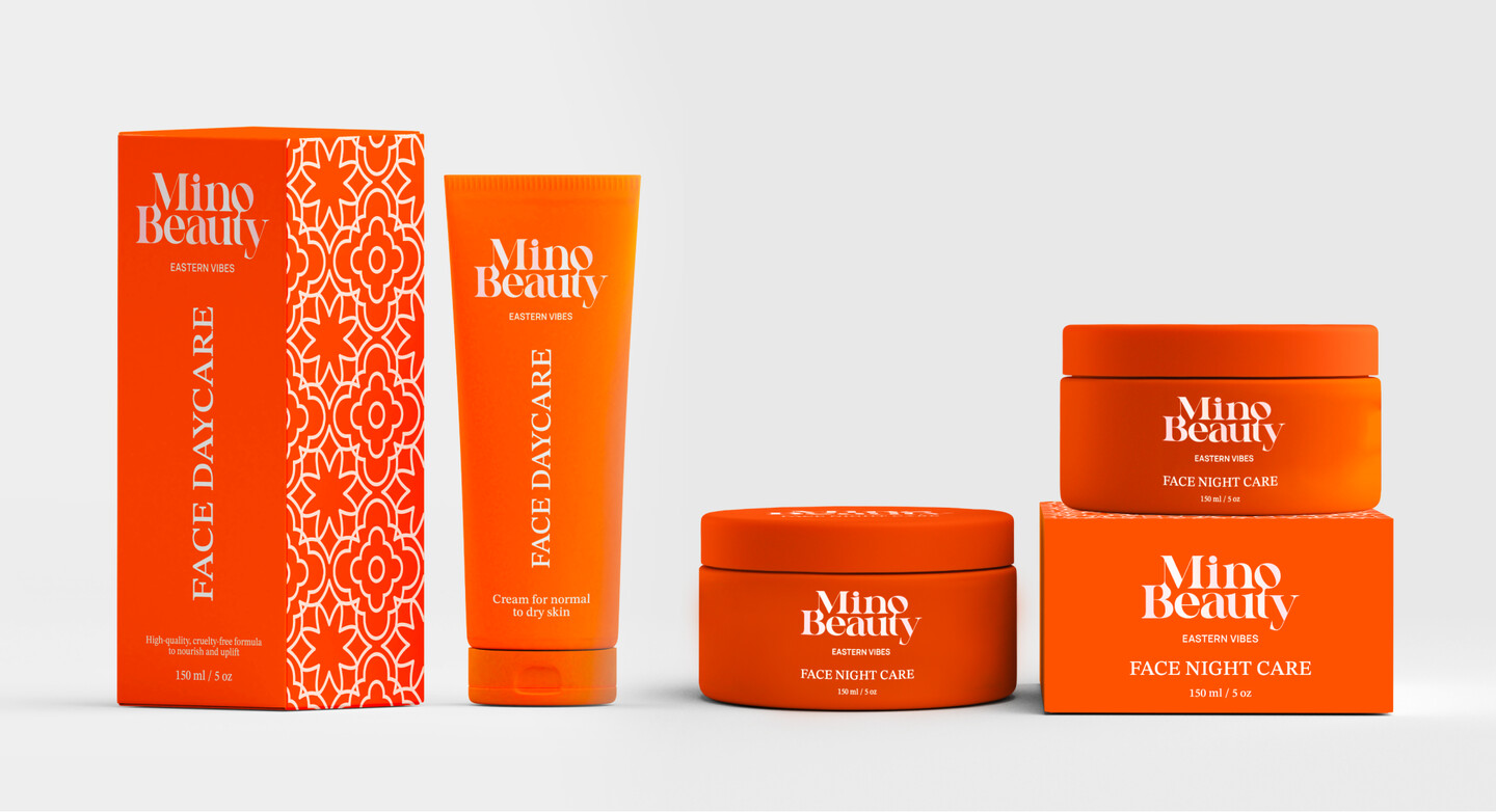 Дизайн упаковки аккуратный, благородный, но при этом привлекательный для аудитории 15-35 лет. Продукты бренда делятся на линейки, каждая представлена в едином цвете. Палитра и стиль бренда навеяны современной восточной культурой и яркими интерьерами. Аудитория Mino — современные девушки 18-35 лет. Они хотят быть яркими и эффектными, но ценят и уважают традиции.